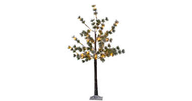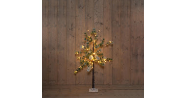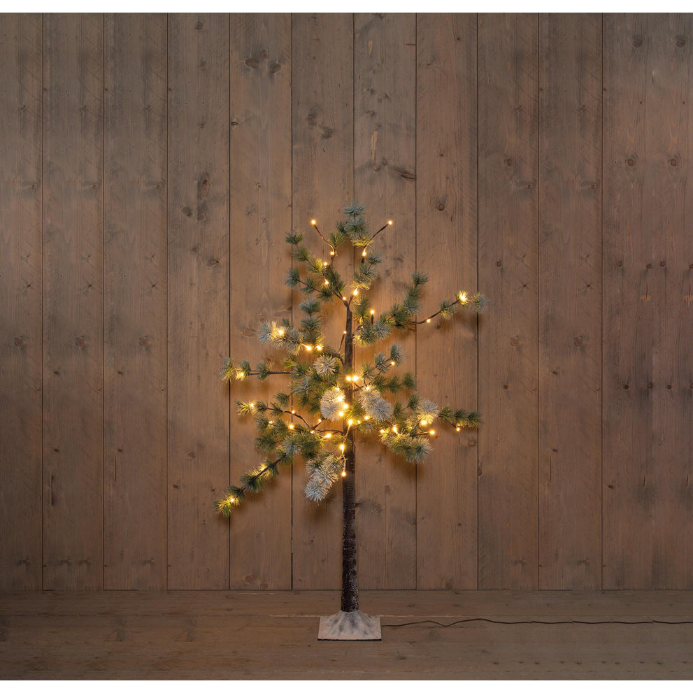 DENNENBOOM MET SNEEUW 64LED CLASSIC WARM IP44 TRAFO 120 CM BRUIN
