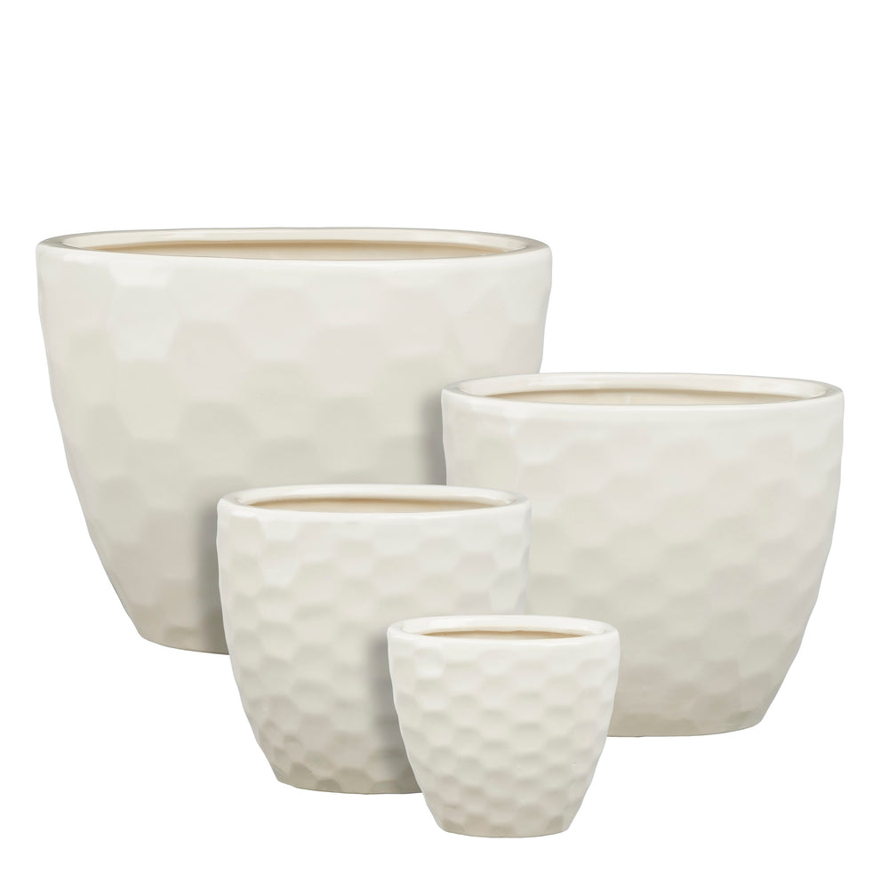Diamond pot ovaal wit set van 4 - l37xb26xh29,5cm