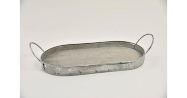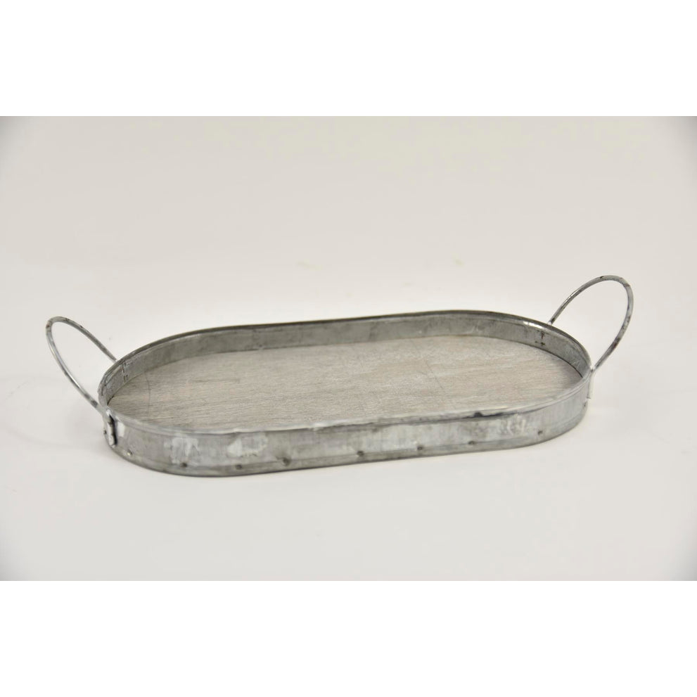 Dienblad ovaal zink/hout met oren 24,5x13x2/5,5cm grey-wash