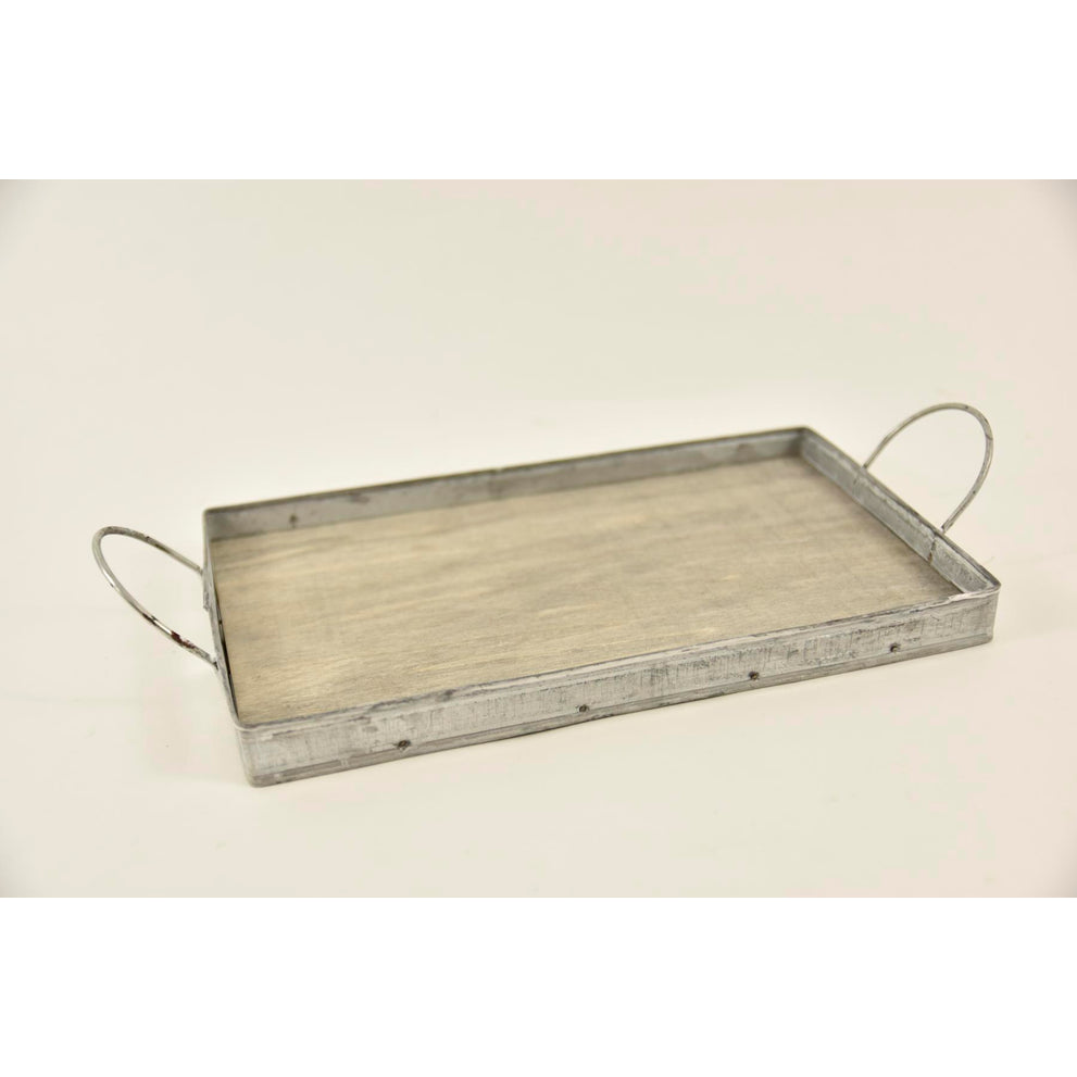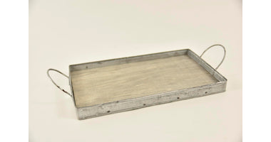 Dienblad rechthoek zink/hout met oren 26x15,5x2/5,5cm grey-wash