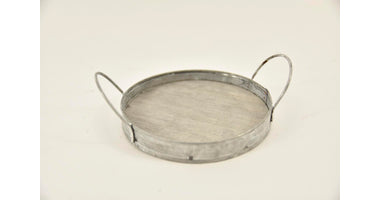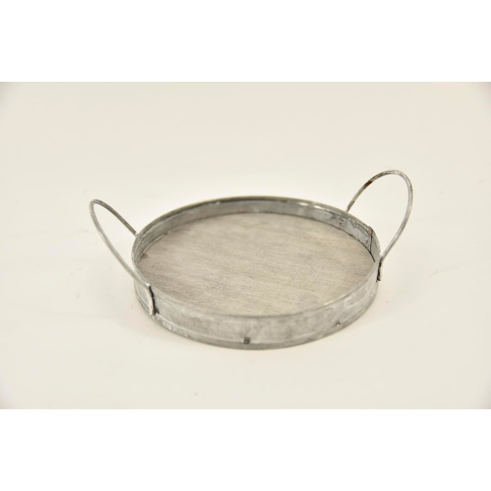 Dienblad rond zink/hout met oren D14,5 H2/5cm grey-wash
