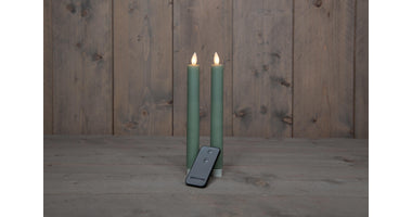 DINERKAARS B.O. 2ST JADE GROEN RUSTIEK WAX 23CM BEWEGENDE VLAM MET AFSTANDSBEDIENING 2X2AAA