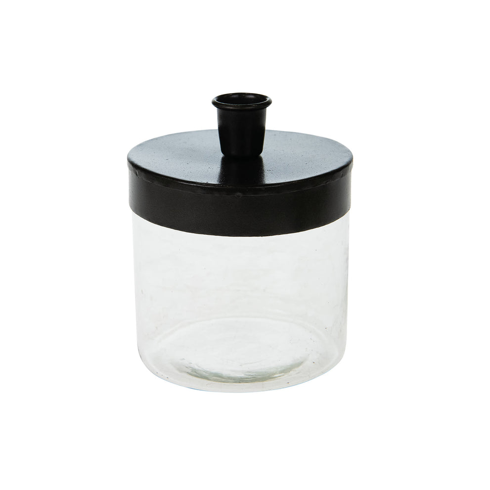 Dinner candle holder metal / glass Ø10x13cm - Black
