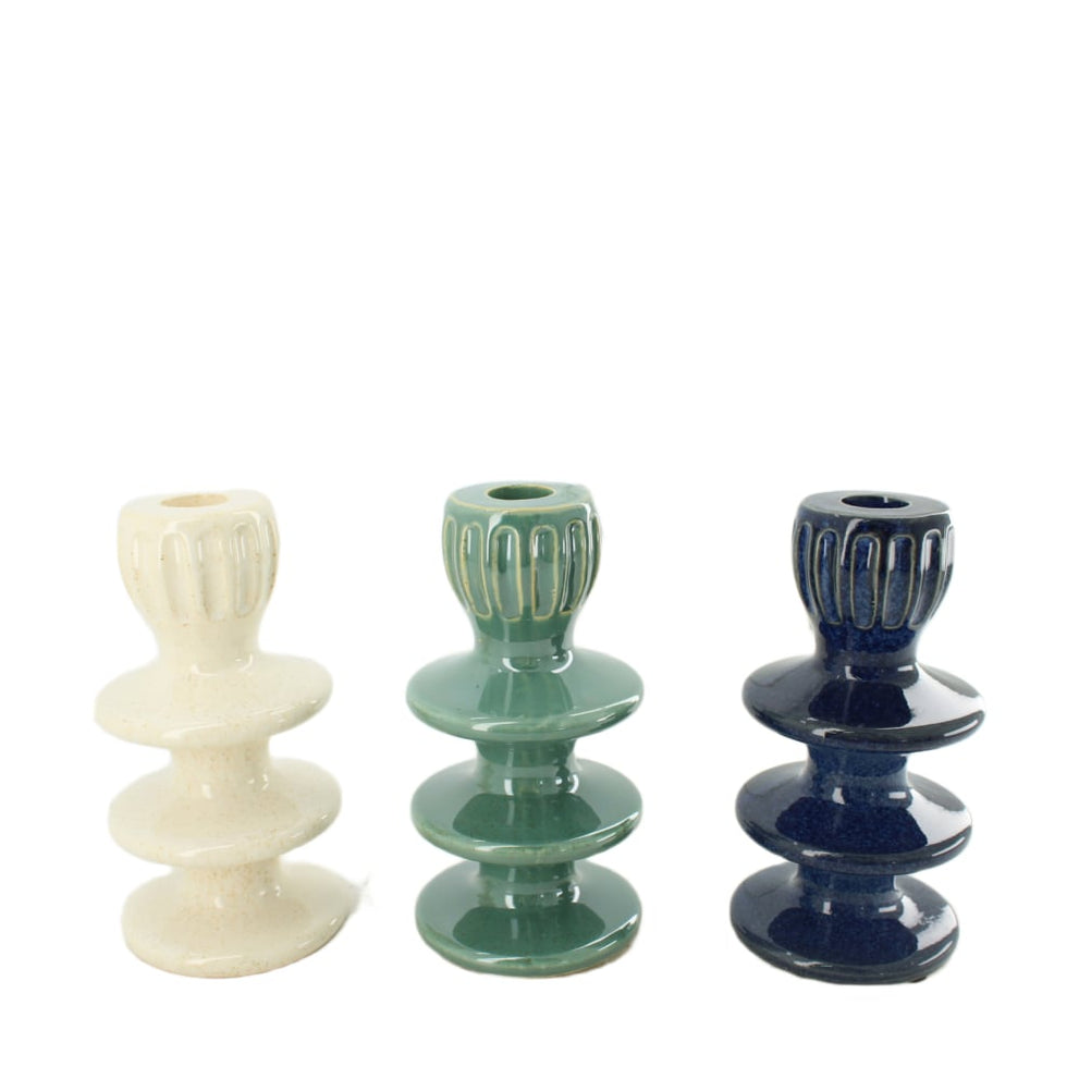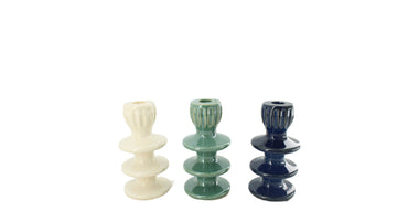 Dinnercandle holder ceramic 9x9x18cm 3 assorti Mixed blue