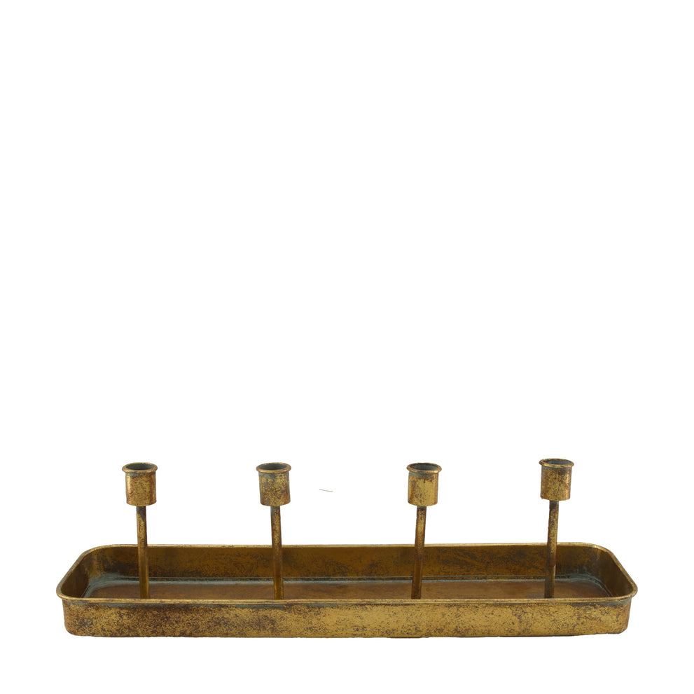 Dinnercandle holder metal 48.5x12.5x13cm Gold white-washed