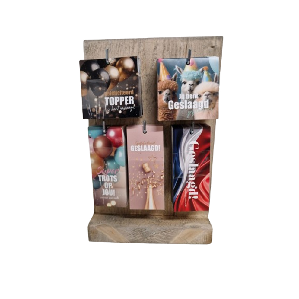 Display met 60 kadokaartjes in 5 motieven ''Geslaagd''