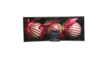 Doos a 3 Kerstbal glas silver inside w shiny color red satin - D8cm