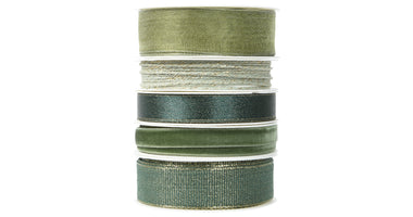 Doosje 5 rol Lint polyester 5 assortie groen 25mm 3mtr