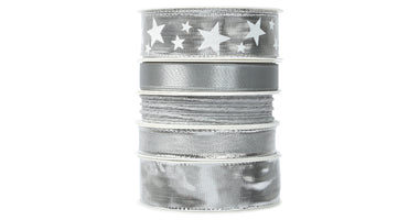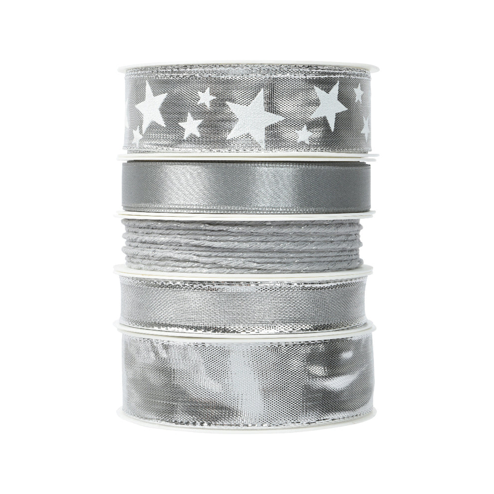 Doosje 5 rol Lint polyester 5 assortie zilver 25mm 3mtr