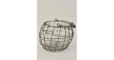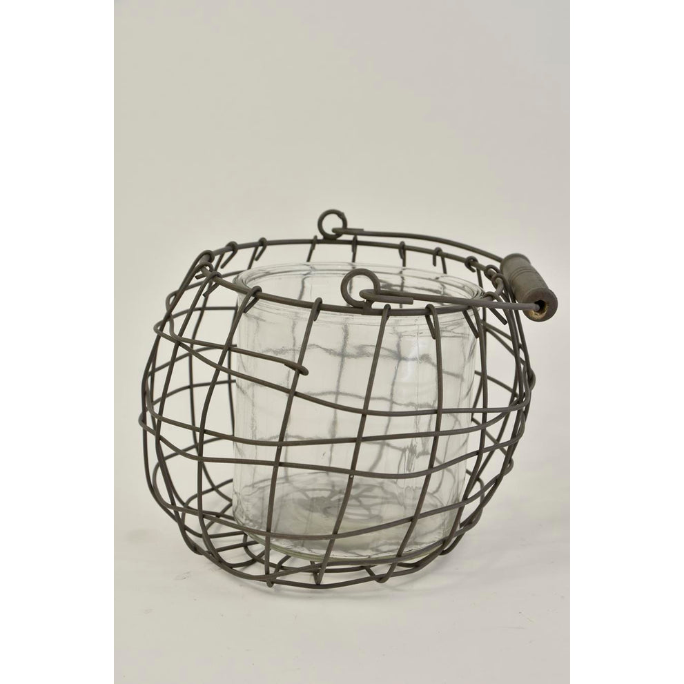 Draadmand met hengsel en glas grijs D15 H13/23cm