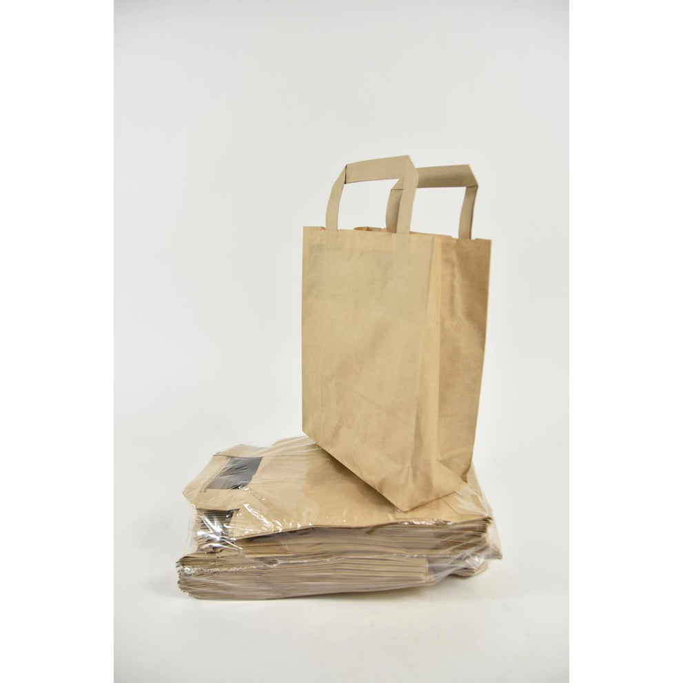 Draagtas bruin kraft 18+8x22cm pak a 50