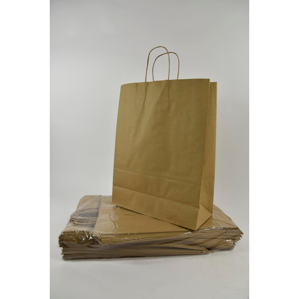 Draagtas bruin kraft 35+14x44 cm a 50 stuks gedraaid handvat