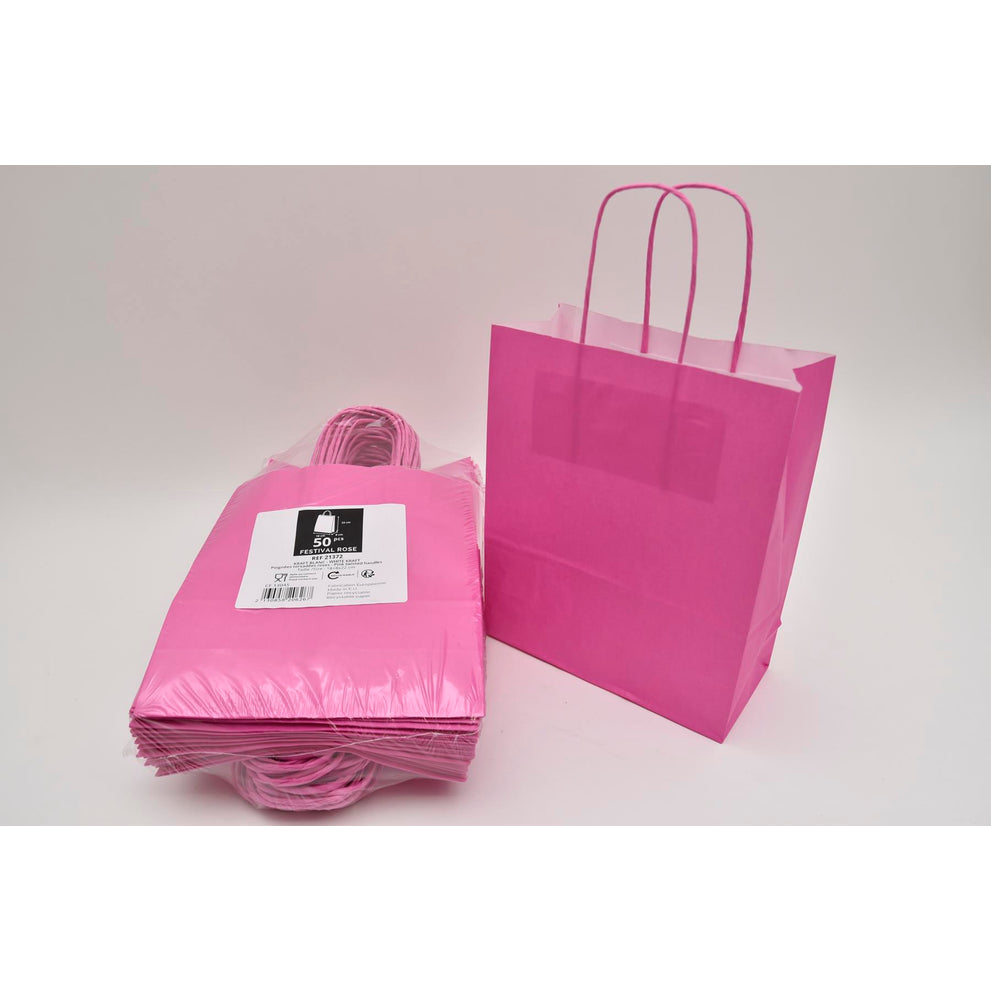 Draagtas fuchsia kraft 18+8x22cm a 50 stuks gedraaid handvat