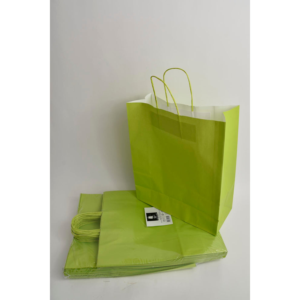 Draagtas Lime kraft 35+14x40cm a 50 stuks gedraaid handv.