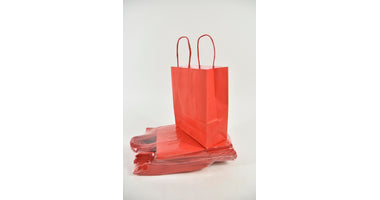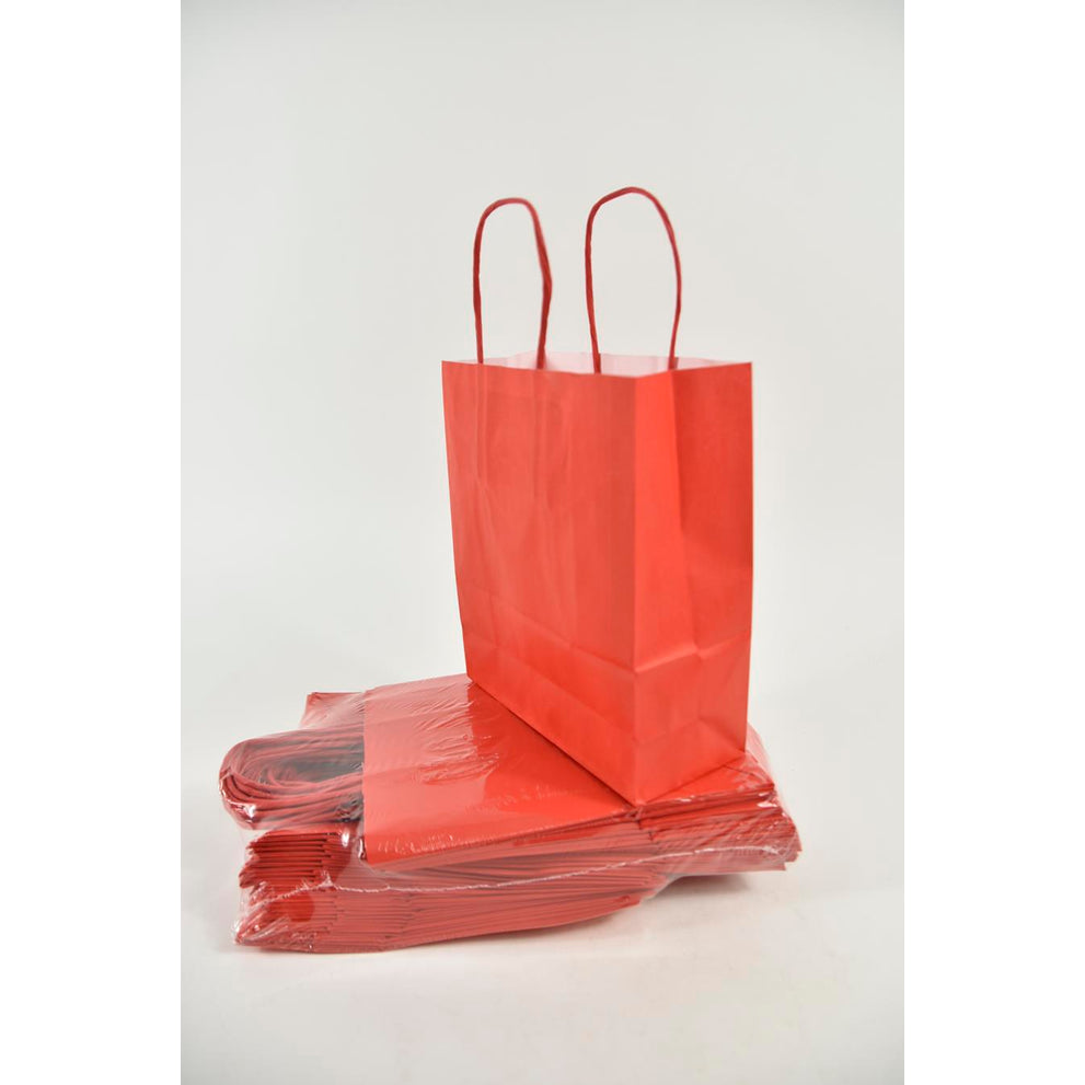Draagtas Rood kraft 18+8x22cm a 50 stuks gedraaid handv.