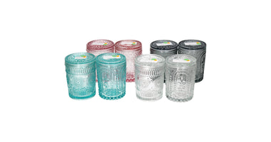 Drinkglas/snoeppot met deksel D8 H10cm 4 kleuren 2 designs