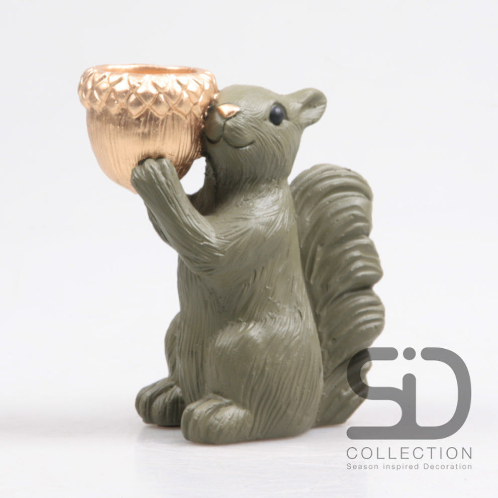 EEKHOORN MET WAXINEHOUDER CEMENT 14.5X8.5X16.3 CM OLIJFGROEN