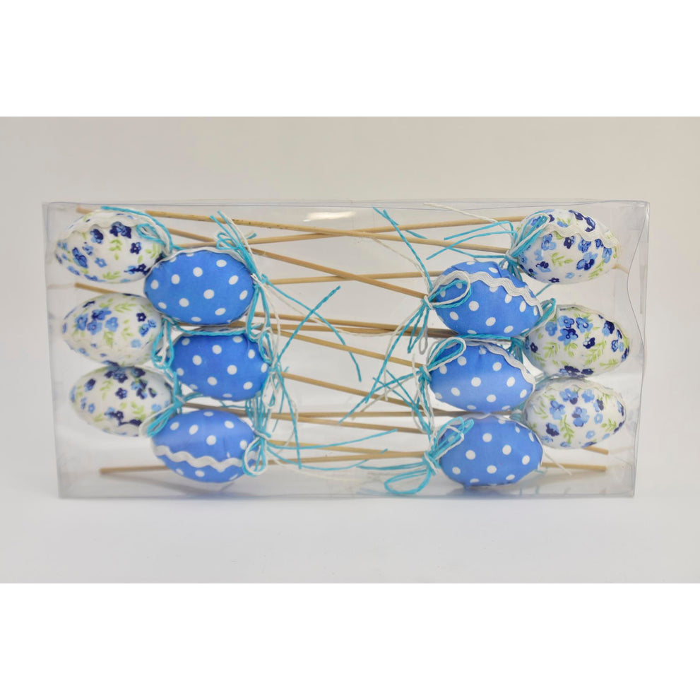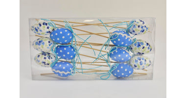 Eieren Op Stok Blauw Wit - 12 Stuks