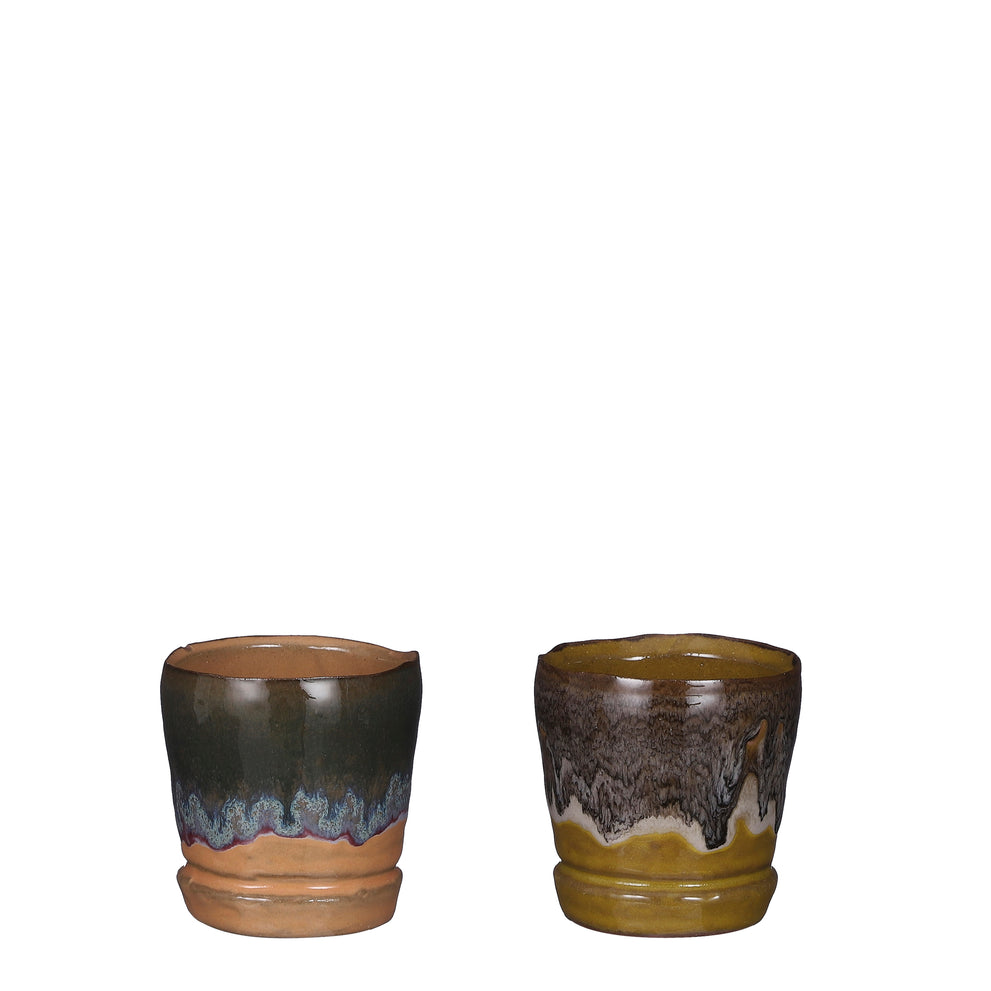 Eros pot rond blauw groen 2 assorti - h7,5xd7,5cm