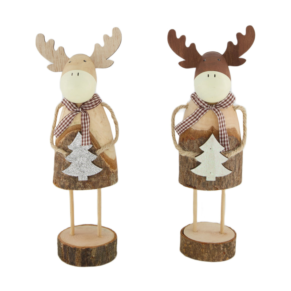 Figurine deer wood 10.5x7x28cm Mixed Brown/Natural