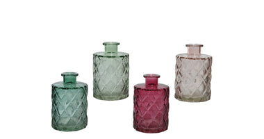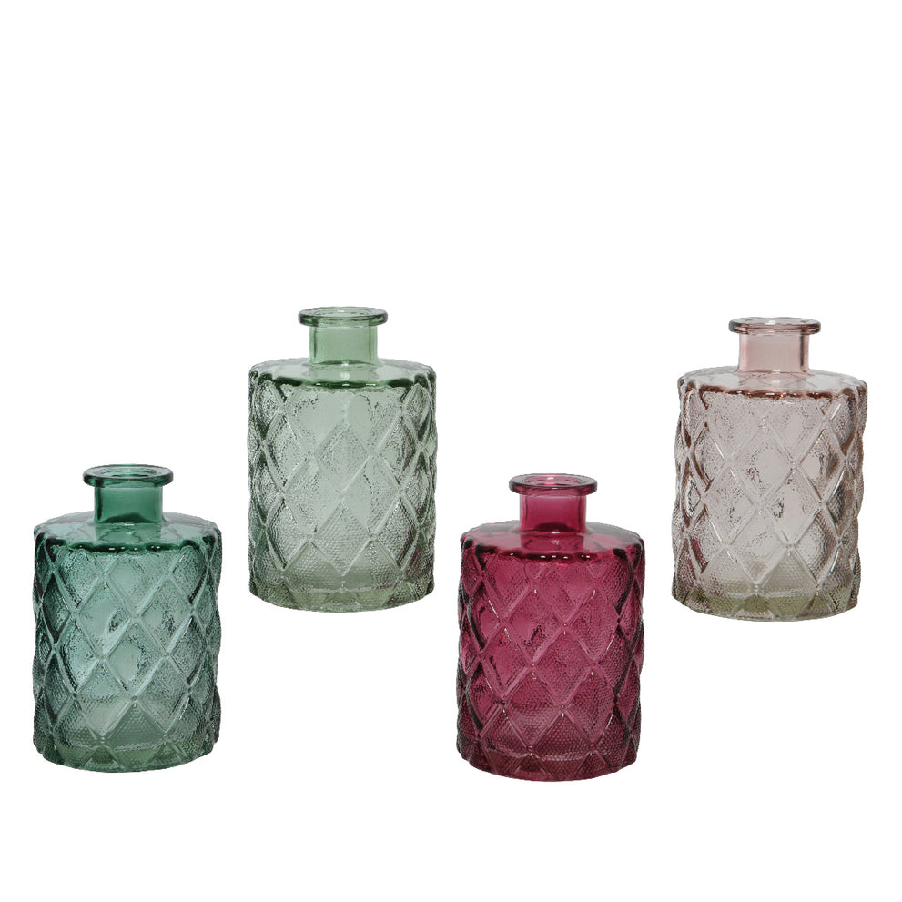 Fles glas 4 kleuren assortie H10,5 D7cm