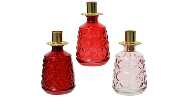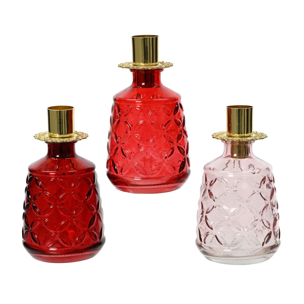 Fles glas met kandelaar 3 assortie red/pink D7,5 H13cm