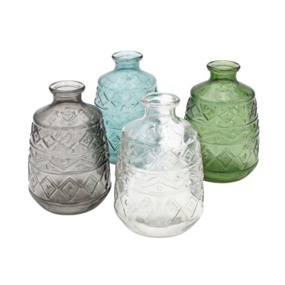 Fles glas ''Werner'' 4 assortie D7,5 H11 cm