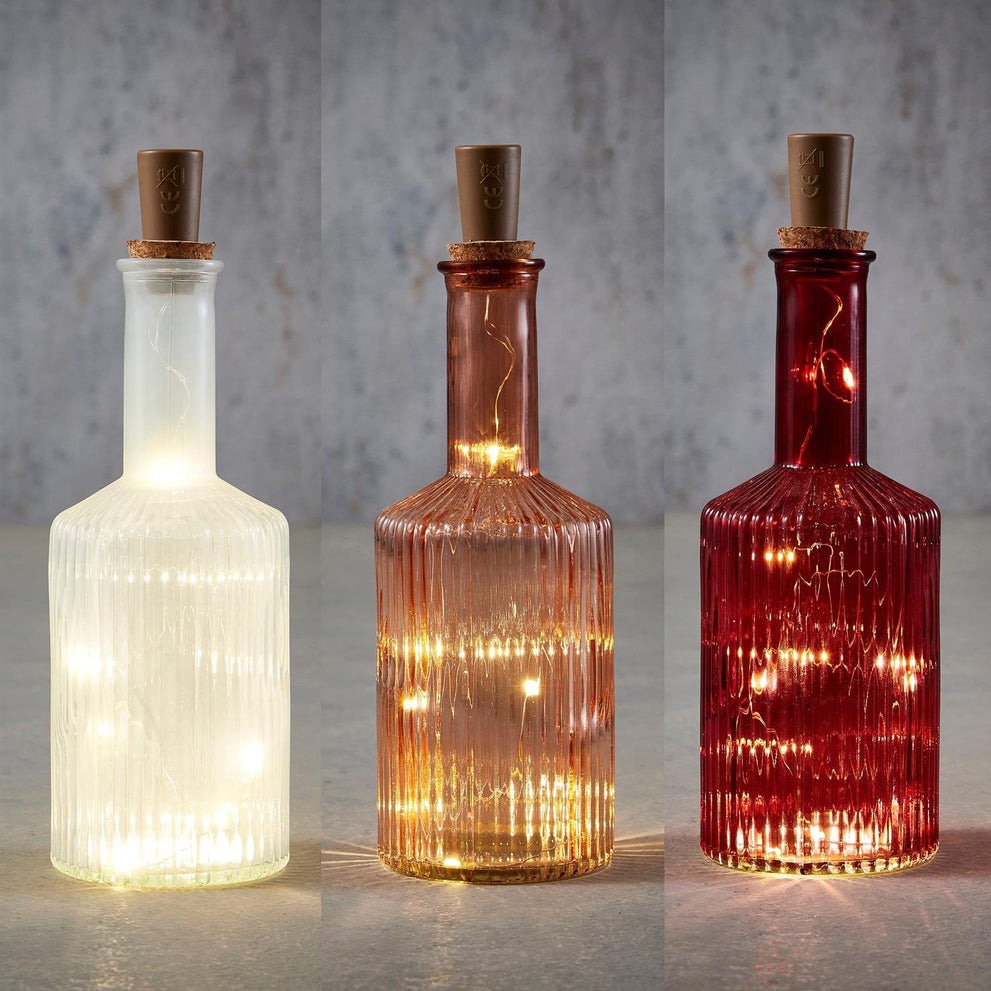Fles wit oranje roze 3 assorti 10 led BO - h24xd8cm