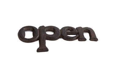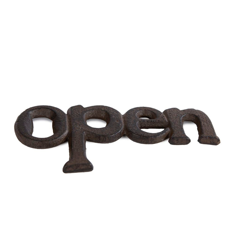 Flesopener "OPEN" antiek bruin metaal 15,4x6,8x1cm