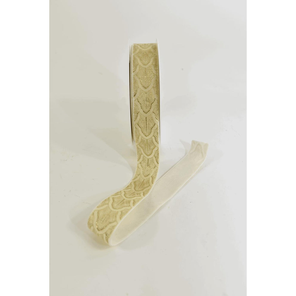 Fluwelen lint "Ornament" 25mm 6mtr cream/gold