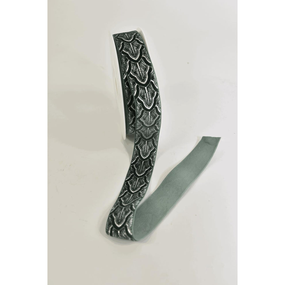 Fluwelen lint "Ornament" 25mm 6mtr donkergroen/zilver