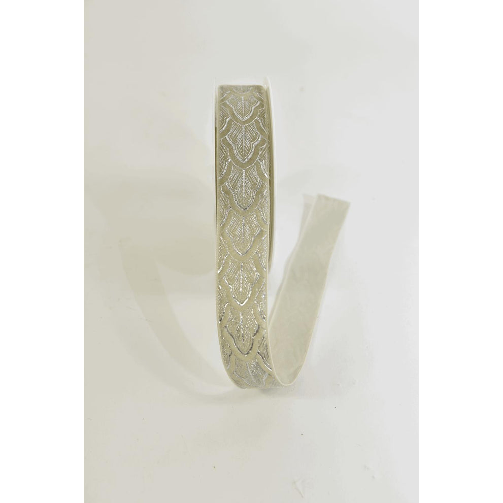 Fluwelen lint "Ornament" 25mm 6mtr parel/zilver