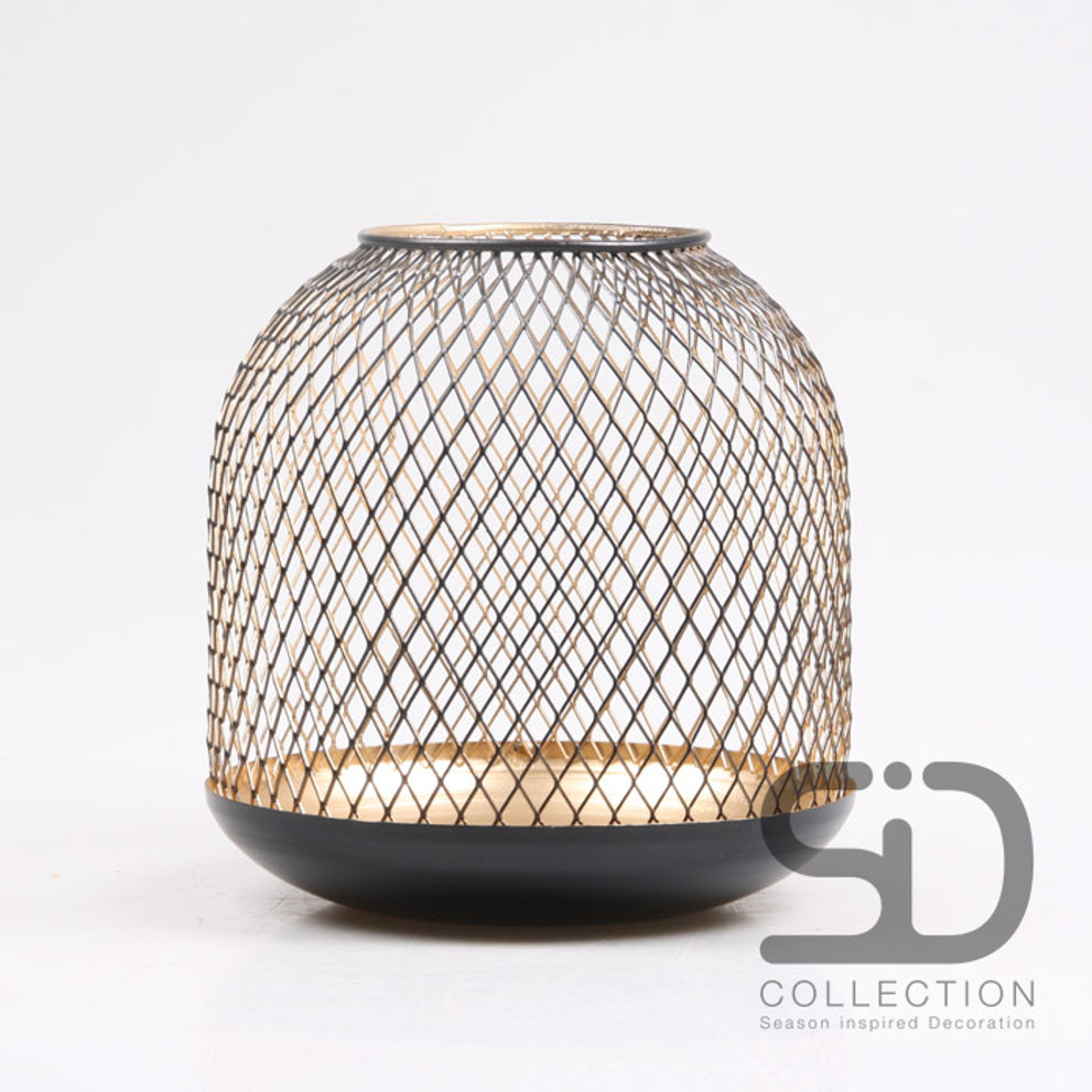 GAAS TAFEL LANTAARN ELVISSA L ZWART/GOUD 20X20X20 CM