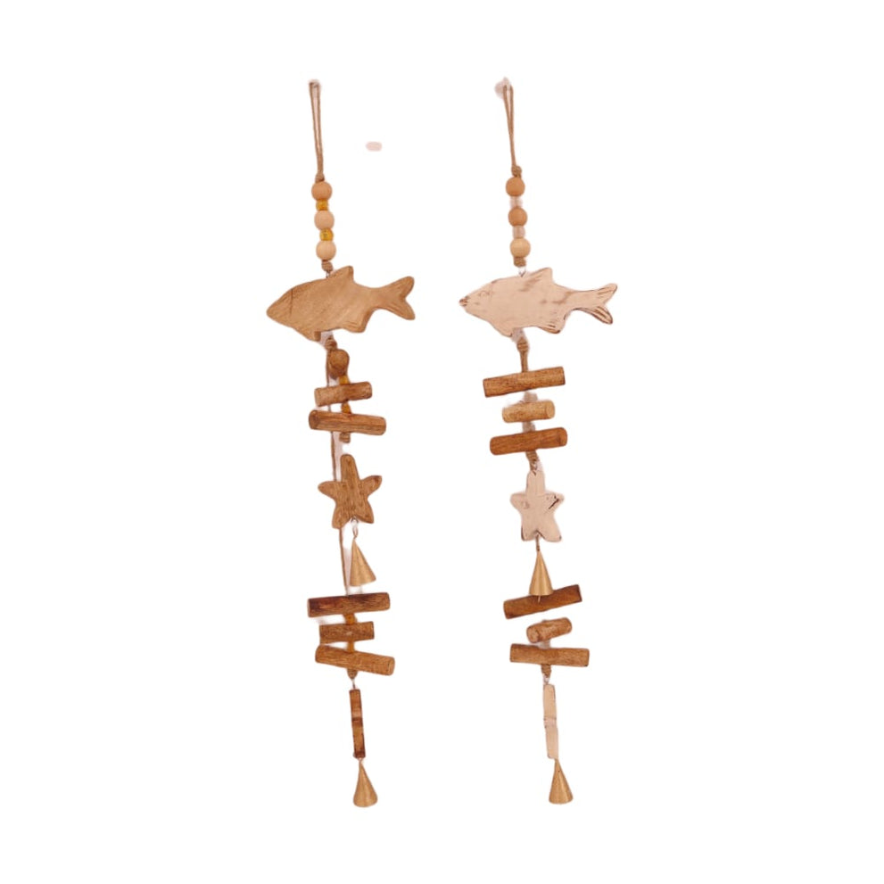 Garland fish mango wood 70x6x1.5cm 2 assorti White/Natural