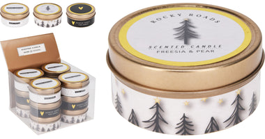 GEURKAARS IN BLIK ''TREES'' D6 H3CM 3 ASSORTIE DESIGNS