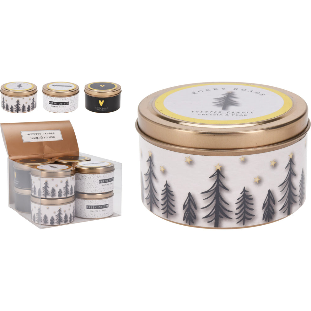 GEURKAARS IN BLIK ''TREES'' D8 H5CM 3 ASSORTIE DESIGNS