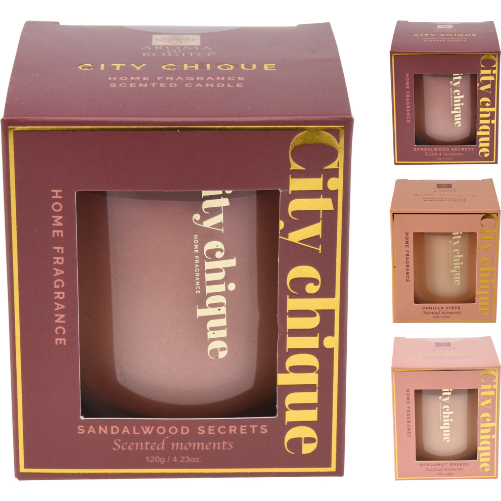 GEURKAARS IN GLAS CITY CHIQUE D7 H8CM 4 ASSORTIE KLEUR/GEUR
