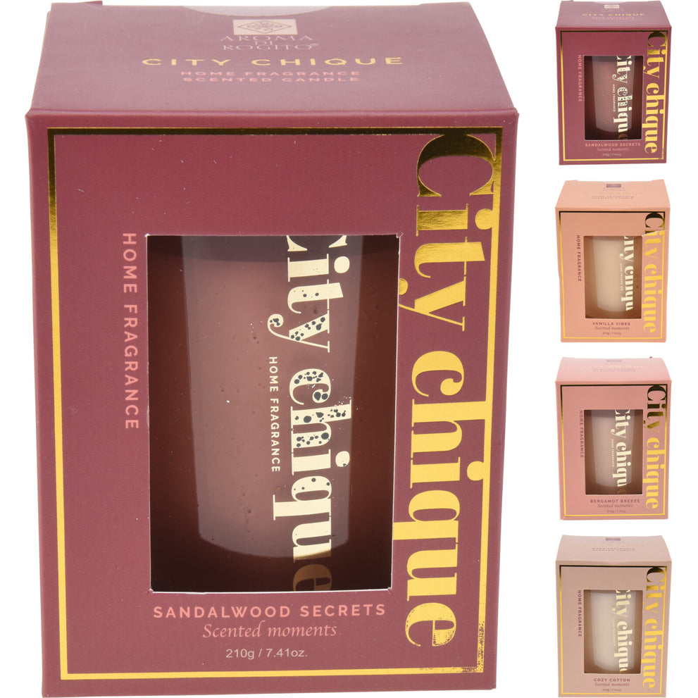 GEURKAARS IN GLAS CITY CHIQUE D8 H10CM 4 ASSORTIE KLEUR/GEUR