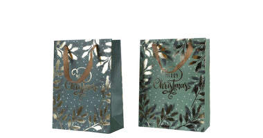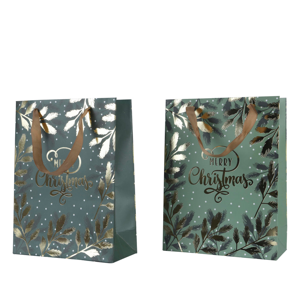 Giftbag papier met handvat 2 ass. groen/goud 30x12x42cm