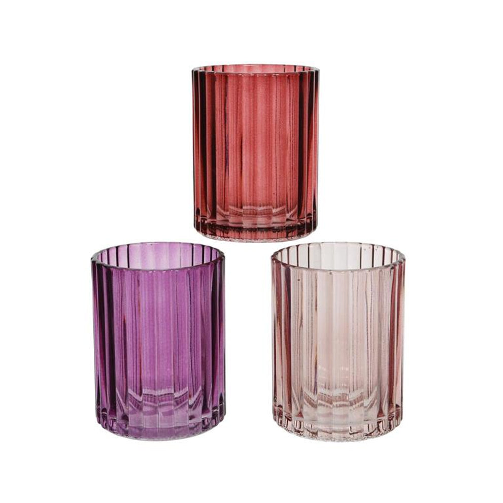 glass tealightholder vertical rim 3clas assorted dia7.5x10cm