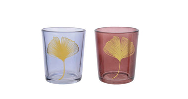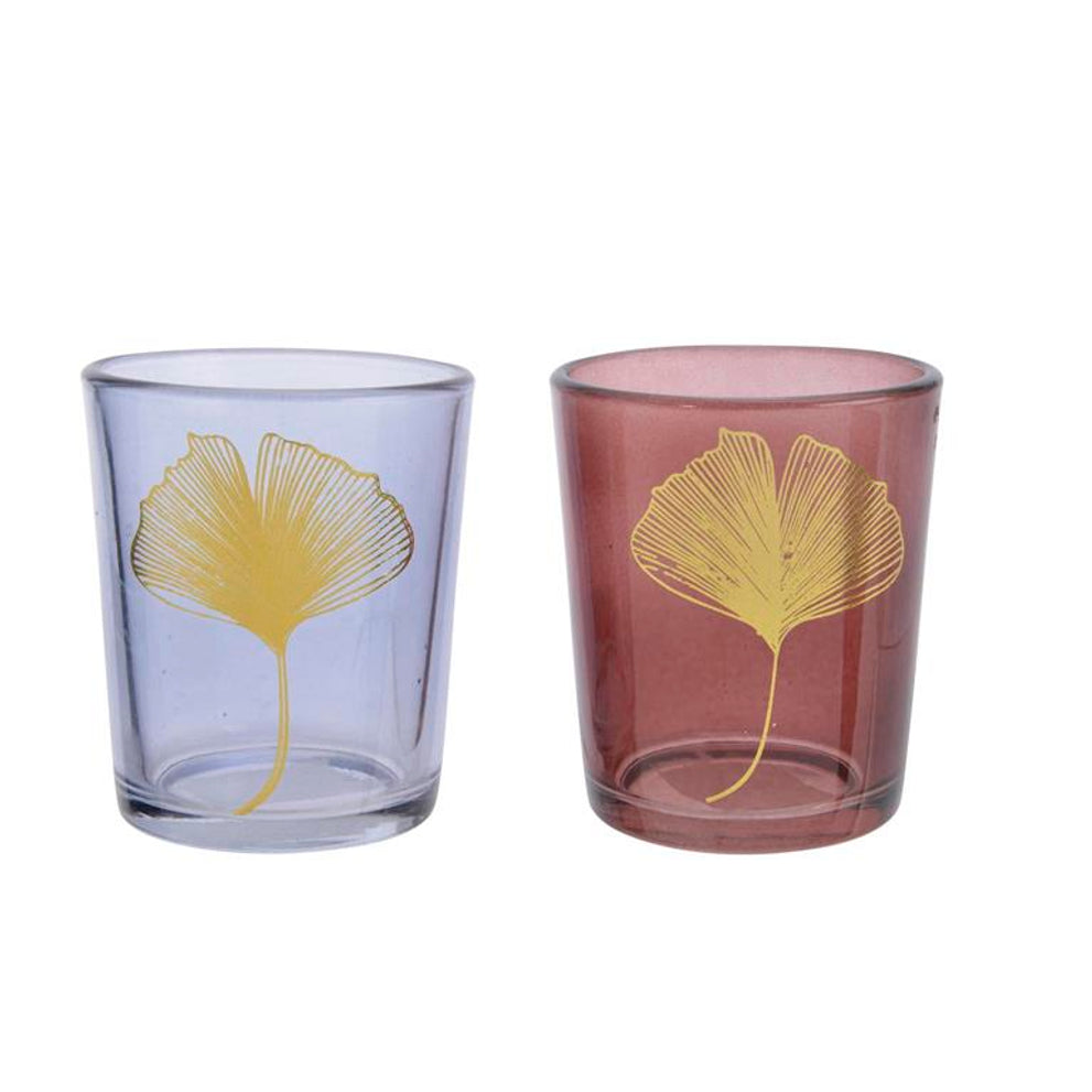 glass tealightholder w ginko leaf 2clas assorted dia5.5x6.5cm