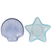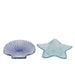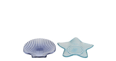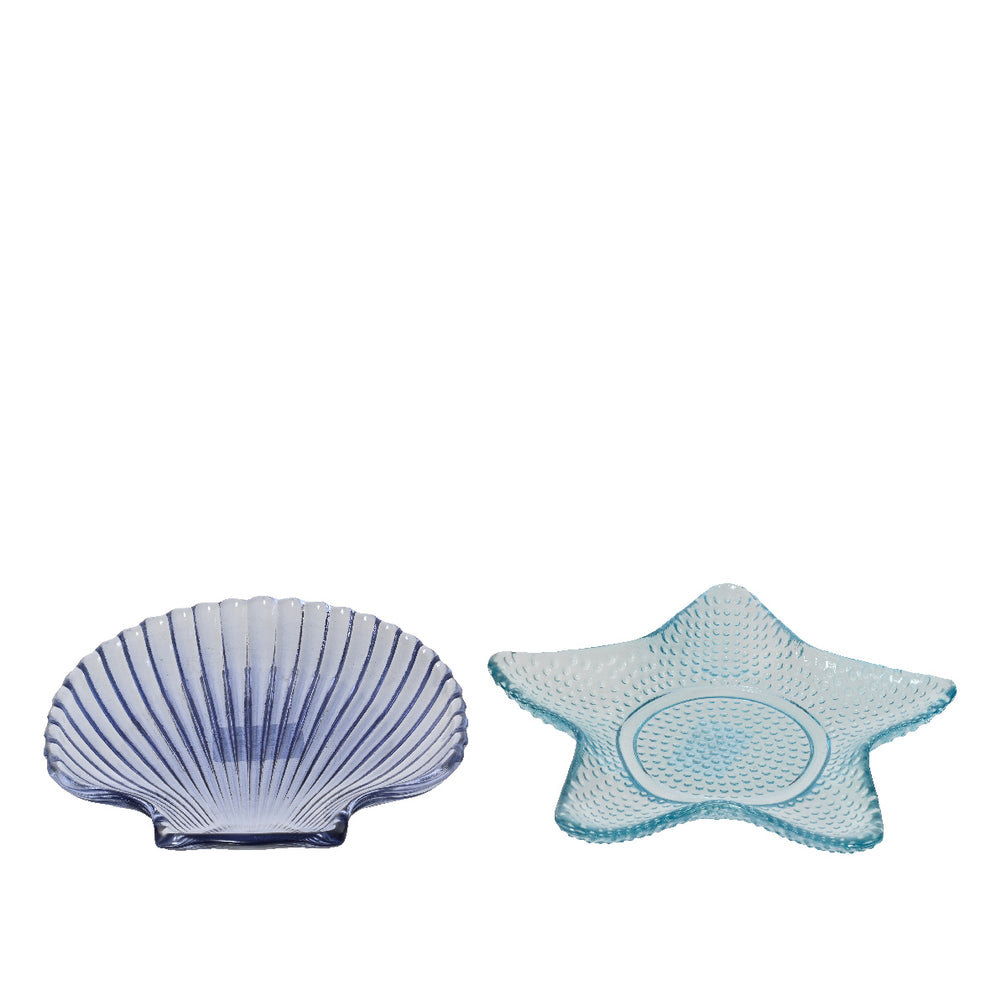 Glazen bord Schelp/Zeester assortie blauw D14 H2cm