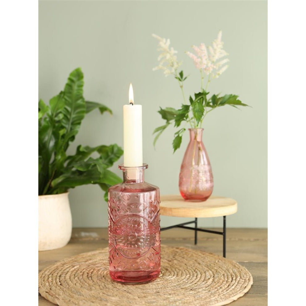 Glazen fles Berlin licht roze D9 H21cm