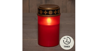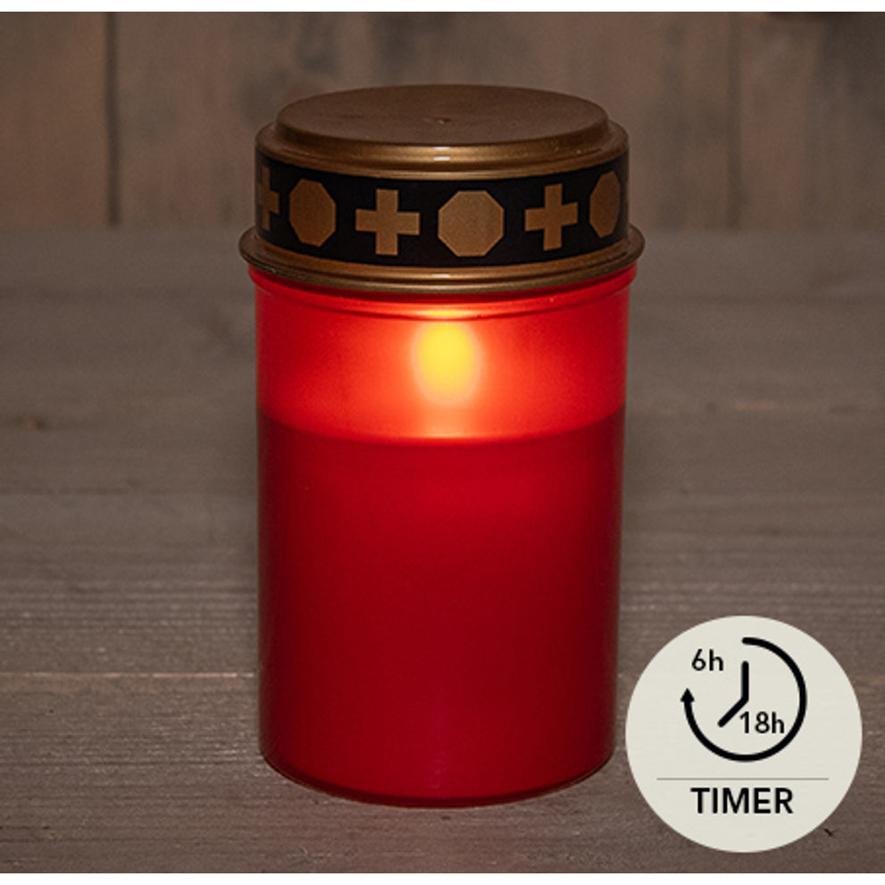 GRAFVERLICHTING LED ROOD OP BATTERIJ MET TIMER 12X7CM