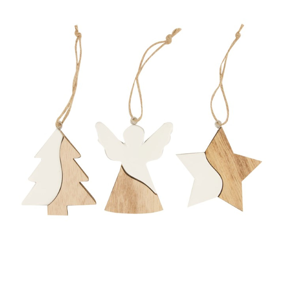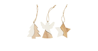 Hanger ceramic with plywood 7.5x0.6x7.5cm 3pc Mixed White