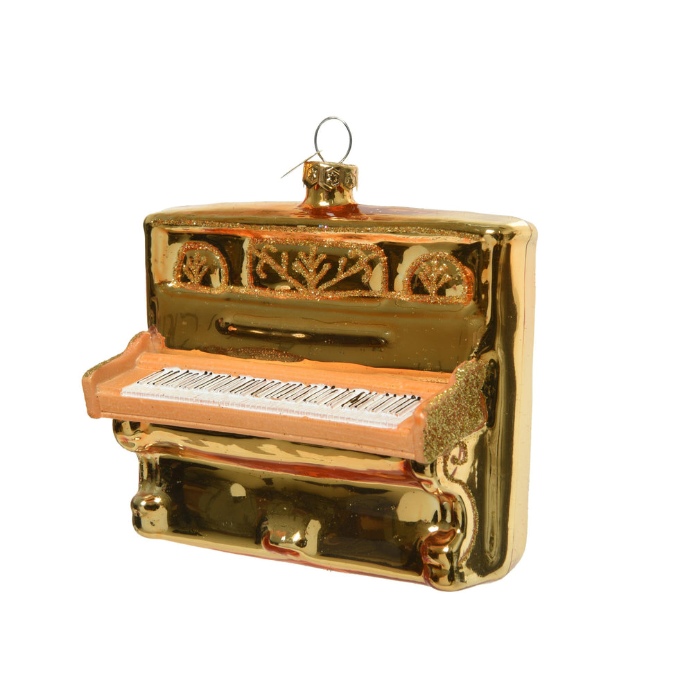 Hanger glas Piano goud glitter 5x10x9,4cm