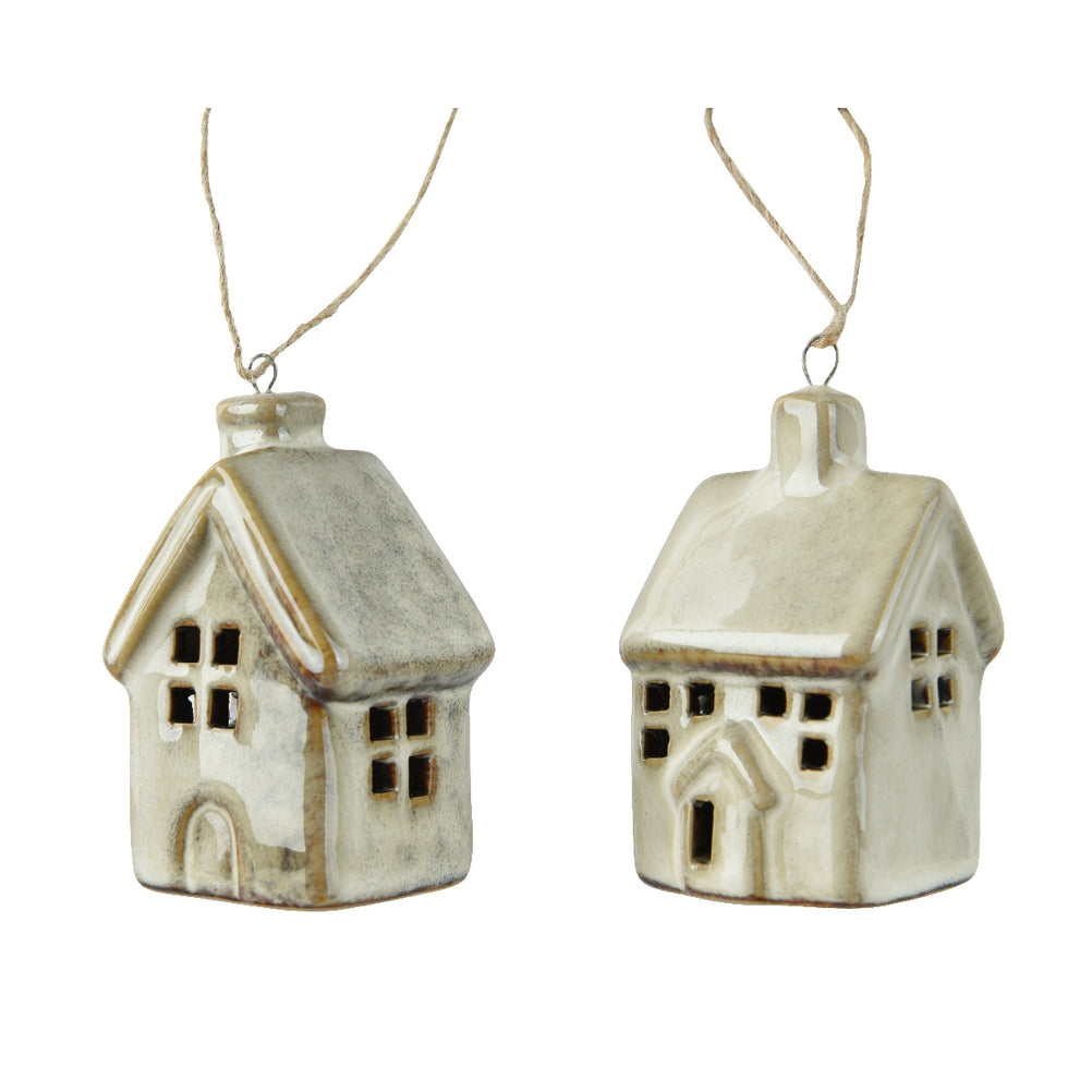 Hanger huis porselein 2 assortie licht bruin 4,5x3,5x7cm