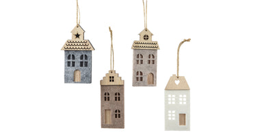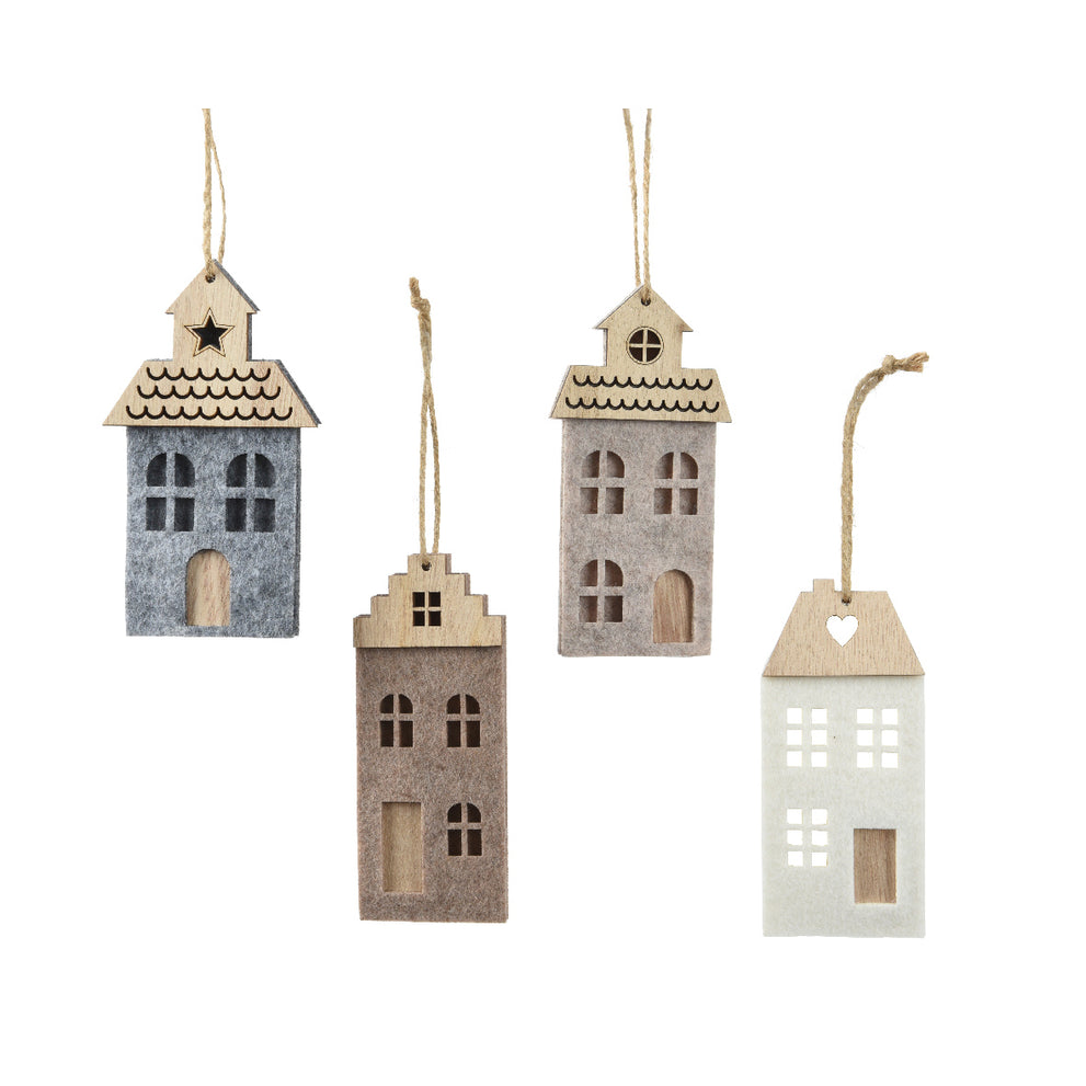 Hanger Huis vilt 4 assortie grijs/taupe 6x0,6x12,5cm