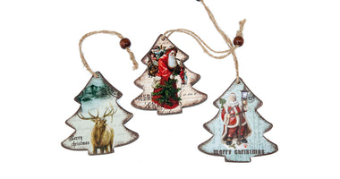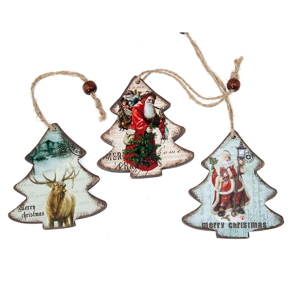 Hanger kerstboom hout met opdruk (6St.) 8cm