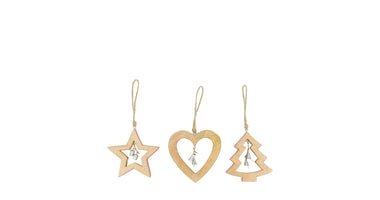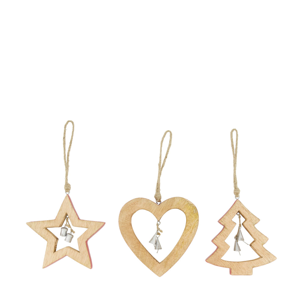 Hanger star tree heart mango wood 15x1.5x15cm Mixed Red